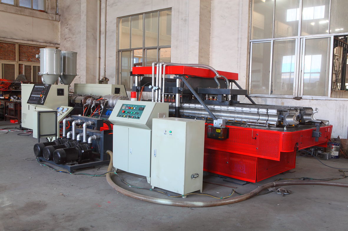 對于PVC,您可以選擇錐形雙螺桿擠出機:這條線還有模具和波紋成型機的。模具塊可以很容易地改變,他們都配有空氣或水冷系統(tǒng)。該生產(chǎn)線還可以裝備與西門子公司的西門子控制系統(tǒng)。