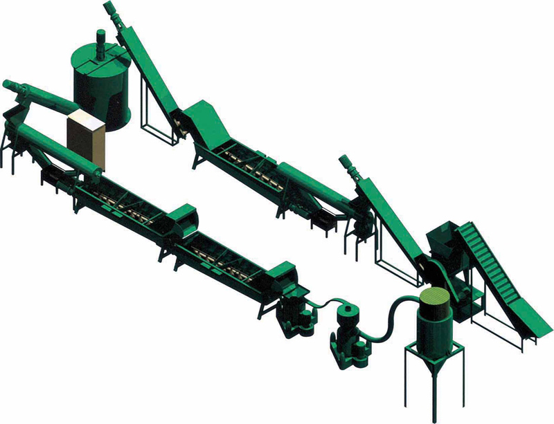 同時根據(jù)用戶原料種類和對瓶片清洗質(zhì)量要求的不同可進(jìn)行選配不同的組合,以滿足不同用戶的需求。目前可選配的單元機(jī)主要有:開包機(jī)、預(yù)清洗機(jī)、商標(biāo)紙剝離機(jī)、人工分選皮帶輸送機(jī)、破碎機(jī)、熱水清洗機(jī)、磨擦清洗機(jī)、漂洗機(jī)、脫水機(jī)、儲料倉、熱風(fēng)烘干機(jī)、螺桿送料機(jī)、皮帶輸送機(jī)等,分色機(jī)、PVC分選機(jī)。