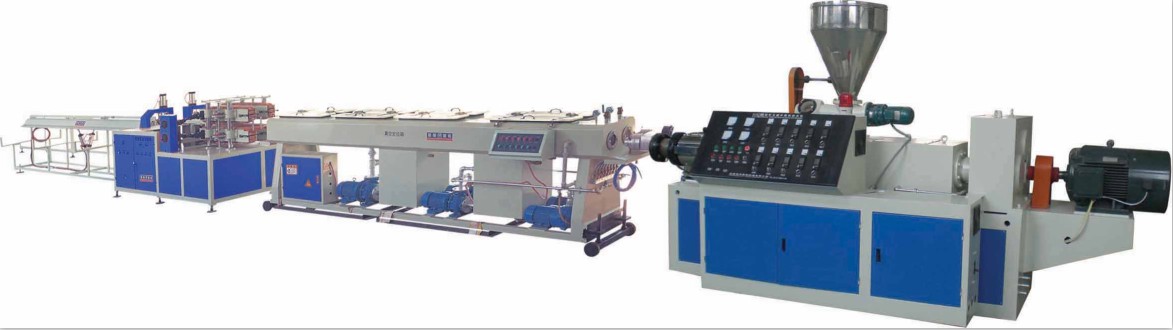 1. 粉末上料機:采用不銹鋼板制造,具有耐高壓,耐腐蝕等特點,能很好地運輸PVC粉料。2. 錐形雙螺桿擠出機:配有強制定量加料系統(tǒng),溫度自動控制系統(tǒng),真空排氣系統(tǒng)和自動調(diào)速系統(tǒng),保證了對物料工藝溫度的準(zhǔn)確控制,保證塑化的穩(wěn)定性,為整條生產(chǎn)線的生產(chǎn)提供保障。主電機采用直流調(diào)速器或變頻調(diào)速器,電機輸出轉(zhuǎn)矩穩(wěn)定,可實現(xiàn)無級調(diào)速。