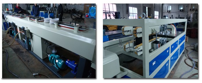 江蘇聯(lián)順機械有限公司設(shè)計的16-63mm PVC管材生產(chǎn)線主要包括:粉末上料機、錐形雙螺桿擠出機、模具(一出二)、真空定徑箱、牽引機、切割機和堆放架。該生產(chǎn)線所生產(chǎn)的PVC管材一般用于給水、排水管材和電線穿線管等。